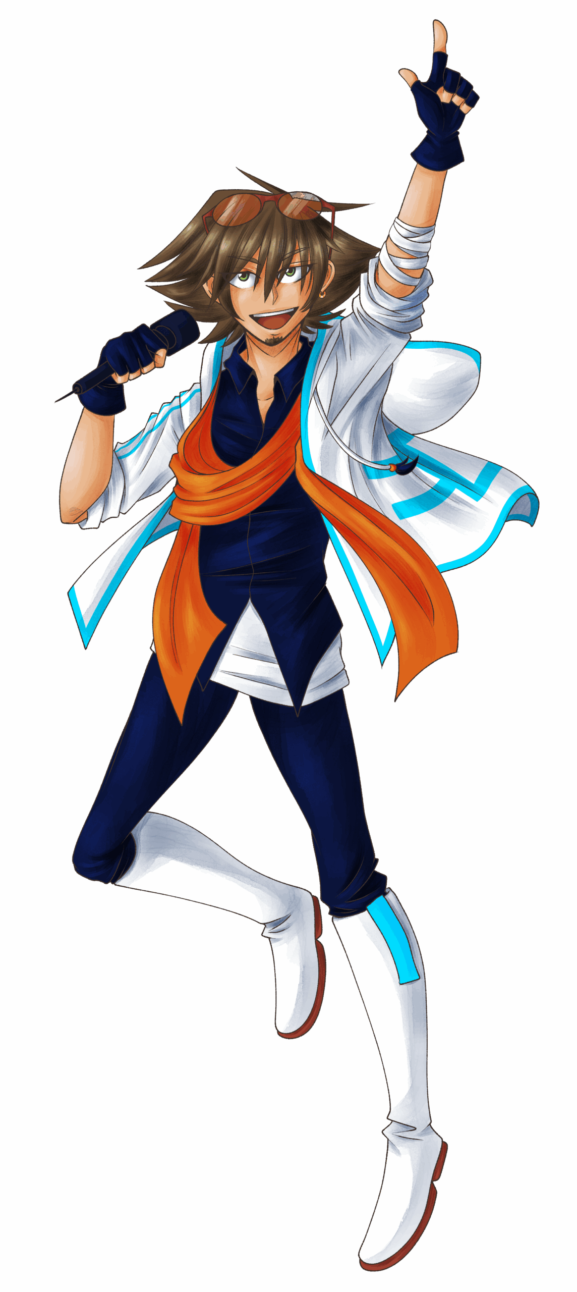 Two pitches with the higher one being a strong voice, he’s good with energetic songs.